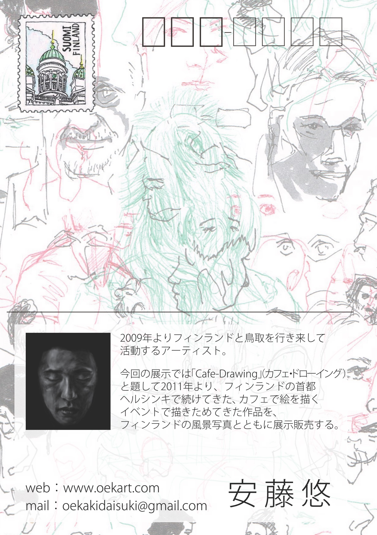 2010年より, フィンランドの首都ヘルシンキを中心に, アーティストに限定せず絵に興味のある人なら誰でも参加できる「Cafe-Drawing」というイベントを開催してきた.