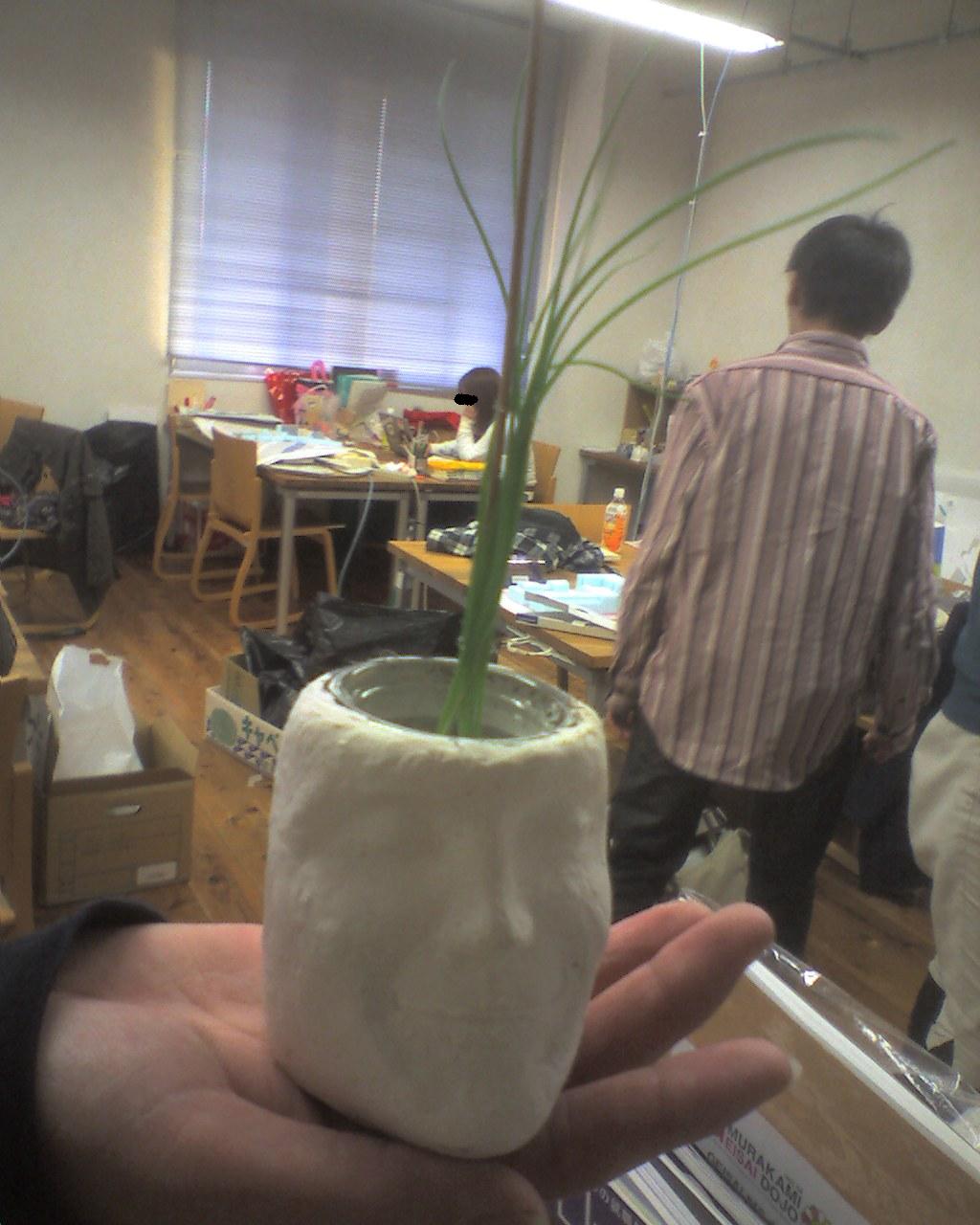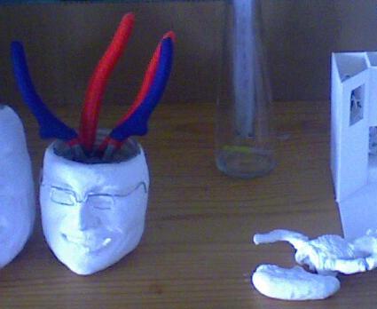 "苦しんでいるのを作って" とのこと. 4つか5つ, それぞれ違う表情のビン人間を並べることを目論んでいるらしい.